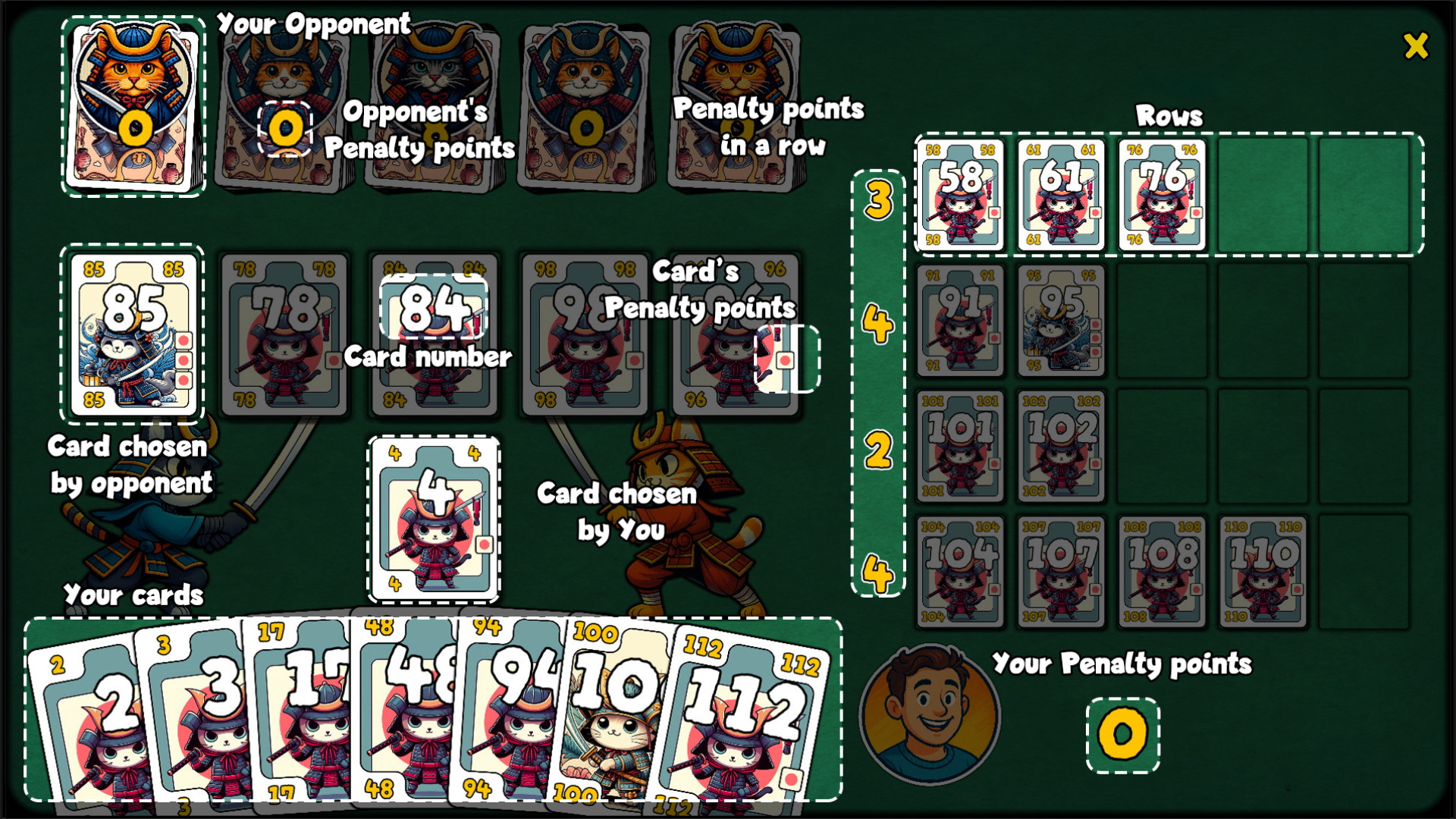 Hello. I have created a card game. This game is based on the card board game “6 nimmt!”
